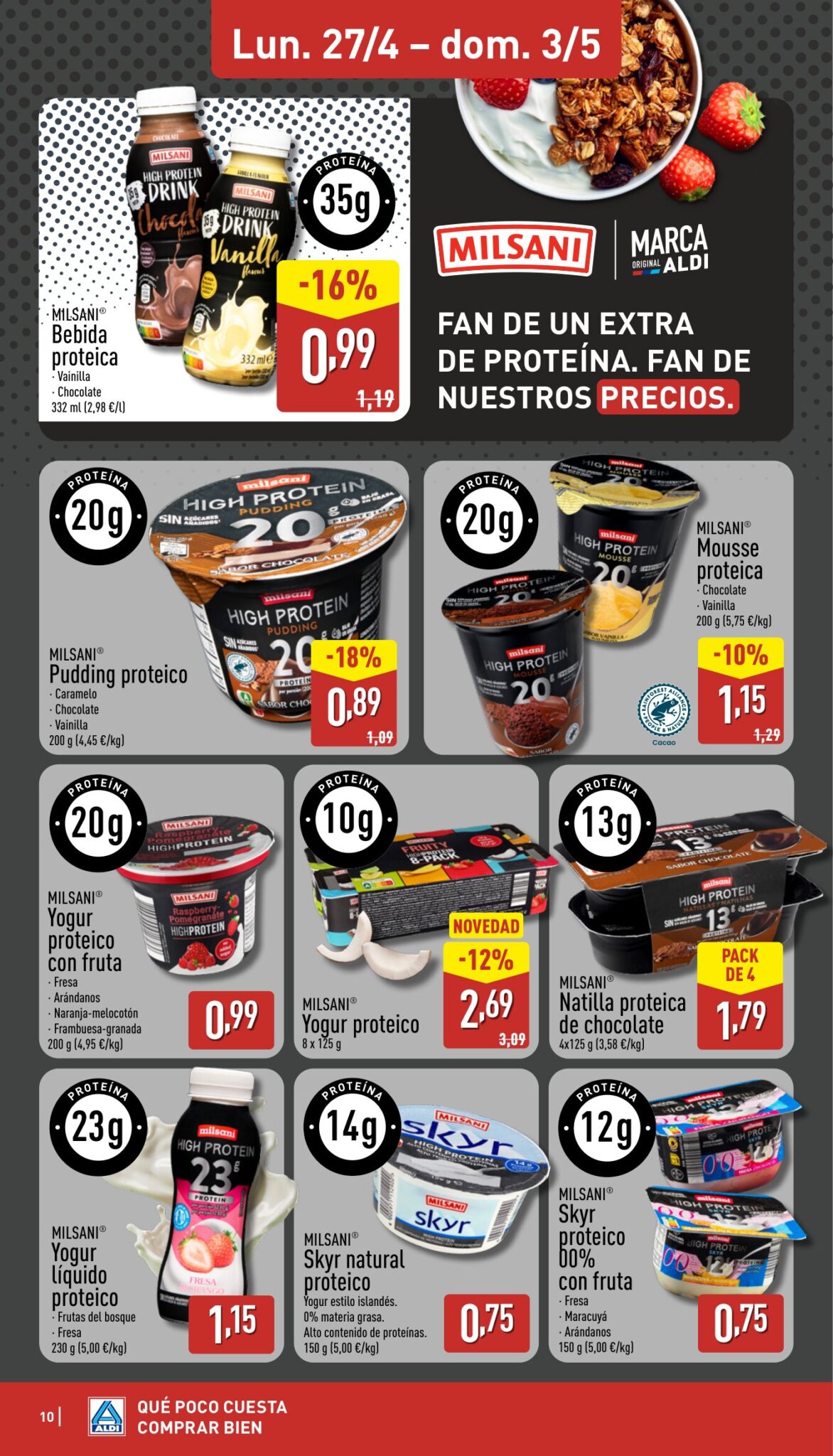 Aldi catálogo válido del 27.04 hasta el 03.05.2026. En Supermercados Aldi puedes hacer tu compra diaria aprovechándote de las excelentes ofertas que lanzan cada día en su promoción SUPERLIKES. Gracias a ella, podrás comprar frescos, lácteos, charcutería, congelados y hasta bollería a un precio sin igual.